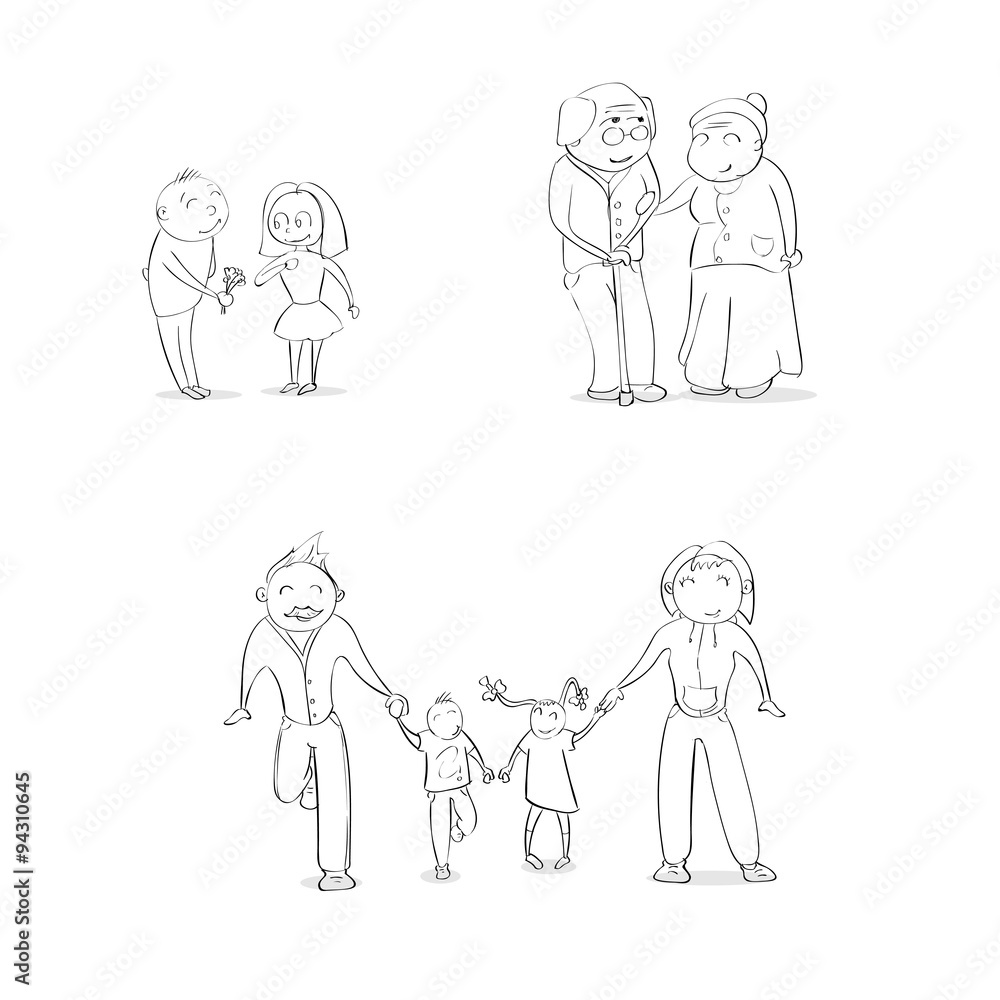 Cartoon People Hand Draw Set Family Couple Sketch Stock Vector Adobe Stock